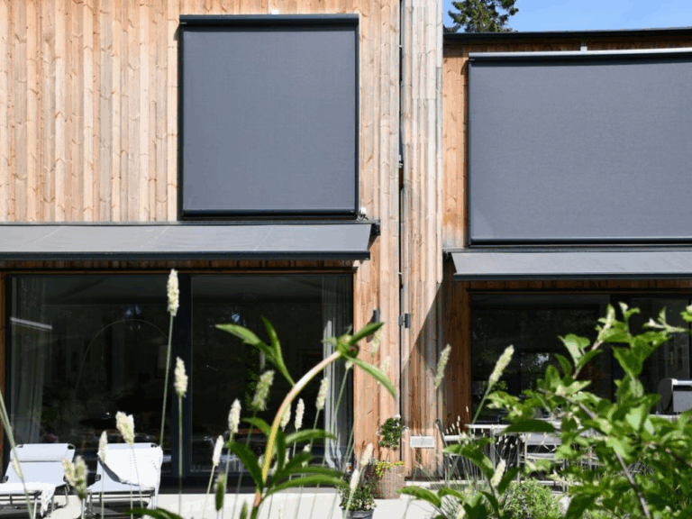 Välj mellan måttanpassade markiser för uteplats och fönster, eller trä- och aluminiumpersienner för inomhusbruk.