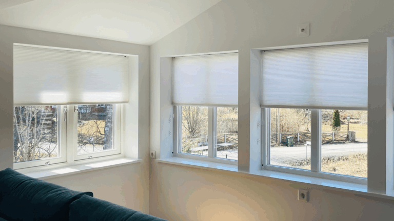 Duette gardiner skapar ett behagligt inomhusklimat året runt. Den unika bikakestrukturen fångar upp luft och bidrar till att hålla värmen inne på vintern och ute på sommaren. Resultatet blir ett mjukare ljus, dämpad ljudnivå och en stillsam känsla i rummet, både stilfullt och energieffektivt.